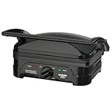 | The Waring Pro Grill and Griddle makes multifunctional an understatement! It can make perfect Panini plus lots more. With four separate cooking options, it handles everything from pancakes to sausages to grilled cheese to steaks to hamburgers to Panini. It helps you prepare more servings of more kinds of food in less time so you can cook for a crowd--no one has to wait. Simply change the cooking plates and adjust the floating hinge to use it as a contact grill, a Panini press, or your choice of an extra-large double open grill or griddle. The two sets of removable plates let you customize the unit specifically for your cooking needs. To use the device as an open grill just insert the two grill plates, the two griddle, plates or one of each. Then open the unit flat to its full 200-square-inch cooking surface. To use the gourmet gadget as a contact grill just close the lid. The floating hinge automatically adjusts to different food thicknesses. All the plates are nonstick and dishwasher safe. ...Read more |